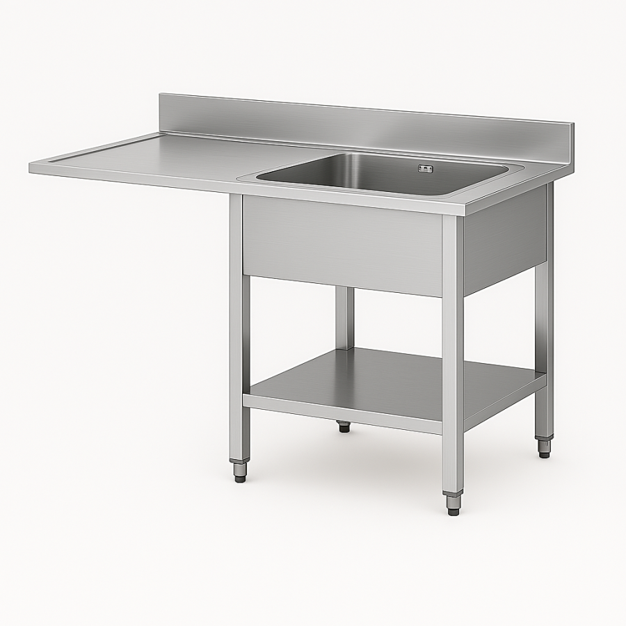 Ce modèle est disponible en 1200 ou 1400 mm de longueur, et 600 ou 700 mm de profondeur. Il s’intègre facilement dans les petites cuisines professionnelles. La hauteur de 850 mm avec dosseret de 100 mm garantit un confort de travail optimal. Les pieds réglables assurent stabilité et adaptabilité sur tous types de sols. Vous gagnez en espace sans sacrifier la fonctionnalité.