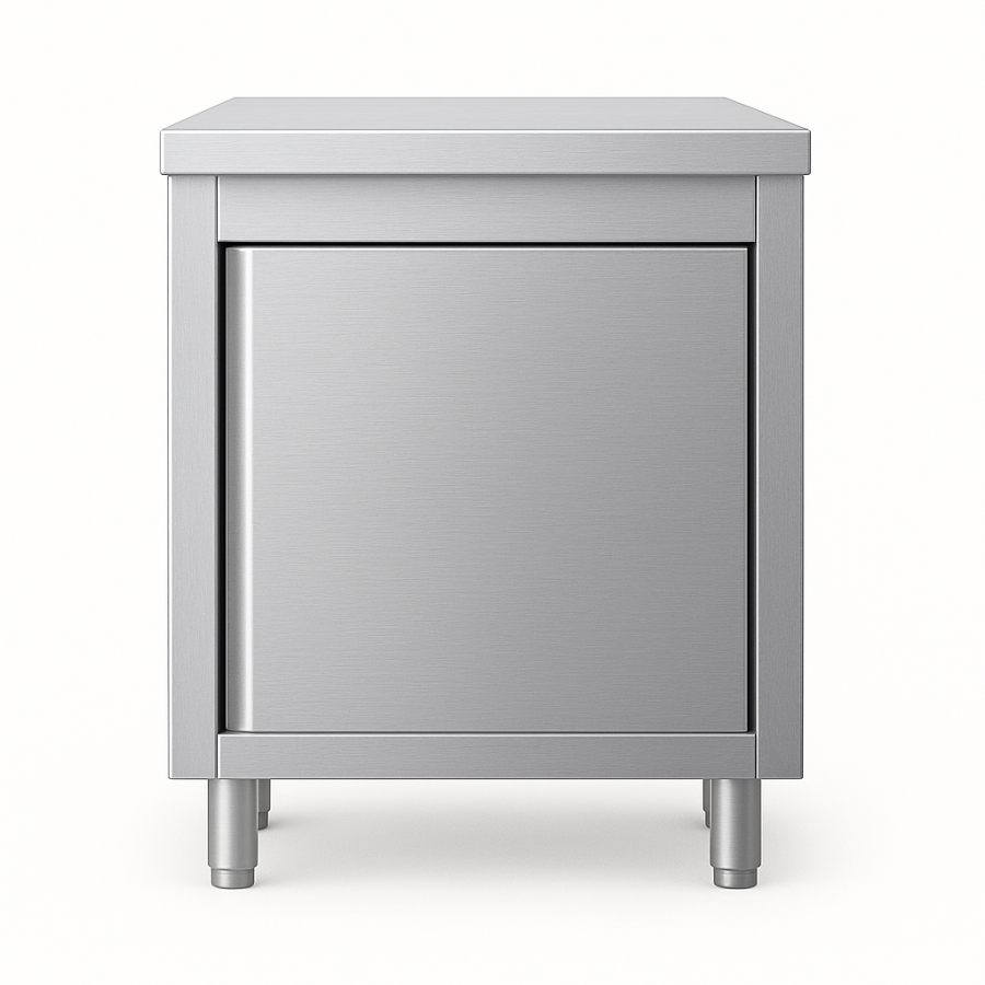L’inox AISI 201 utilisé pour la fabrication garantit une propreté irréprochable. La surface lisse ne retient ni graisse, ni résidus. Le nettoyage se fait facilement avec un chiffon humide et un produit adapté. Aucun recoin ne permet l’accumulation de salissures, ce qui limite fortement les risques de contamination. Ce placard répond donc parfaitement aux normes d’hygiène les plus strictes.