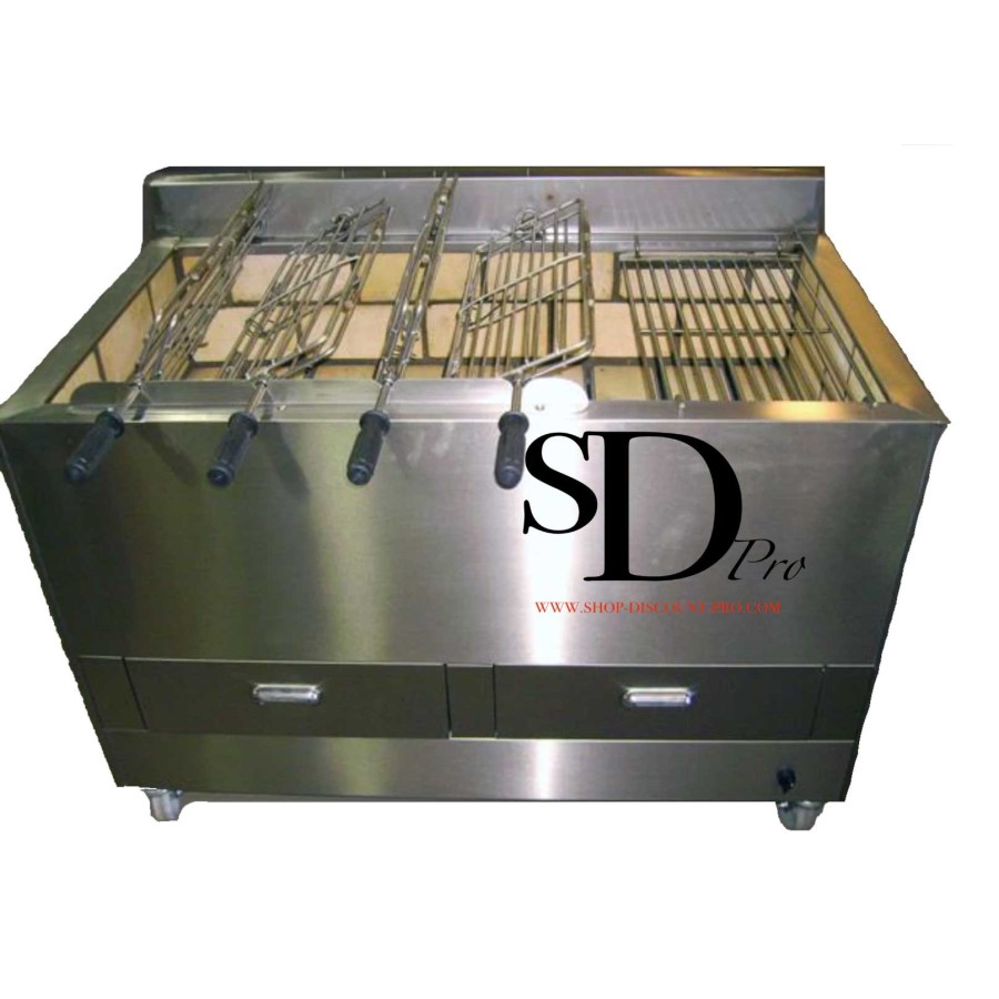 barbecue 6 grilles rotatives 18 poulets 1 fixe 340 kg 1600x820x900 mm