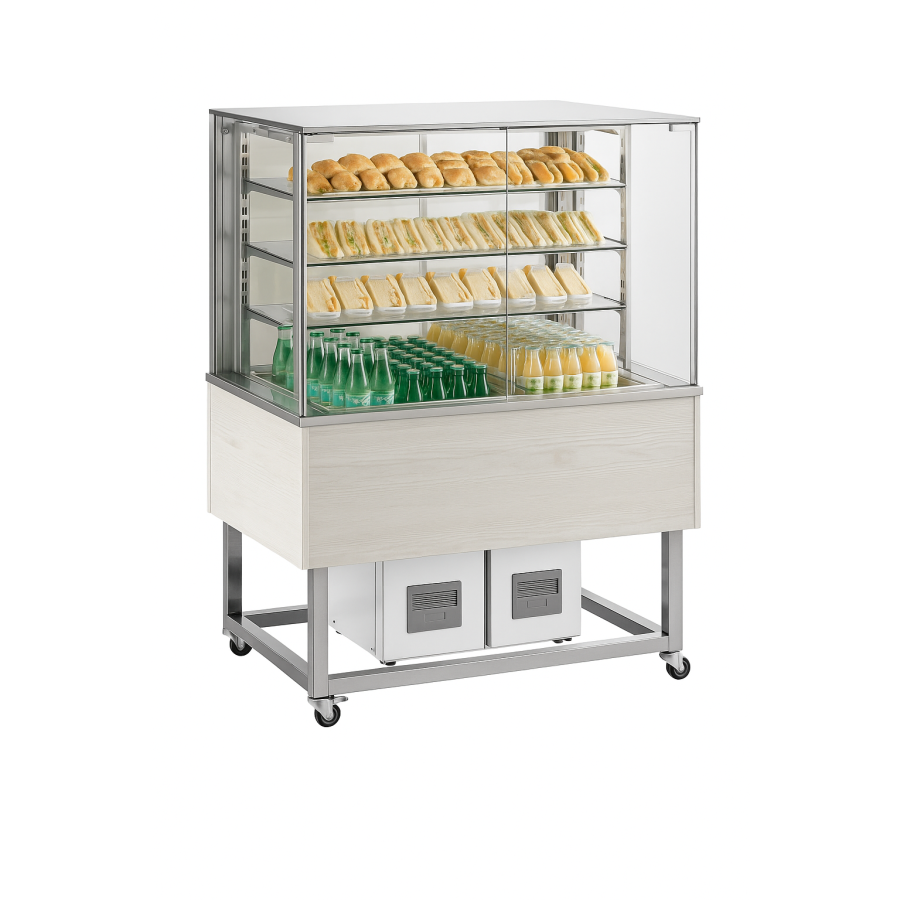 Apportez fraîcheur, élégance et praticité à vos présentations grâce à la vitrine réfrigérée GN 3 x 1/1 – Hemlock, de la gamme PLATINUM.