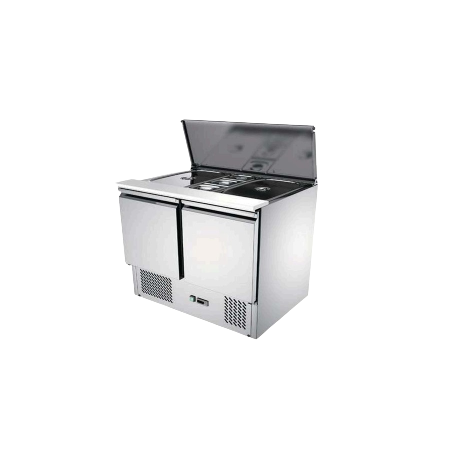Cette saladette réfrigérée professionnelle est conçue pour une conservation optimale des ingrédients tout en garantissant une hygiène irréprochable. Fabriquée en acier inoxydable (intérieur et extérieur), elle est équipée d’un plan de travail en plastique, d’un thermostat digital (Dixell ou Eliwell) et d’un système de refroidissement statique. Son couvercle rabattable protège efficacement vos bacs GN (non inclus).